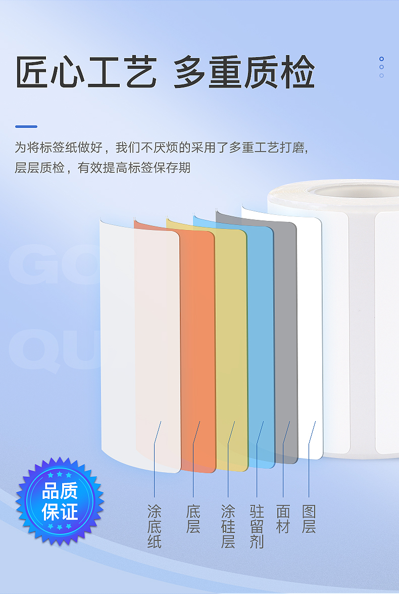 產(chǎn)品結(jié)構(gòu):耐低溫標(biāo)簽一般有4層,表面涂層 基材 粘著劑 隔離底紙;